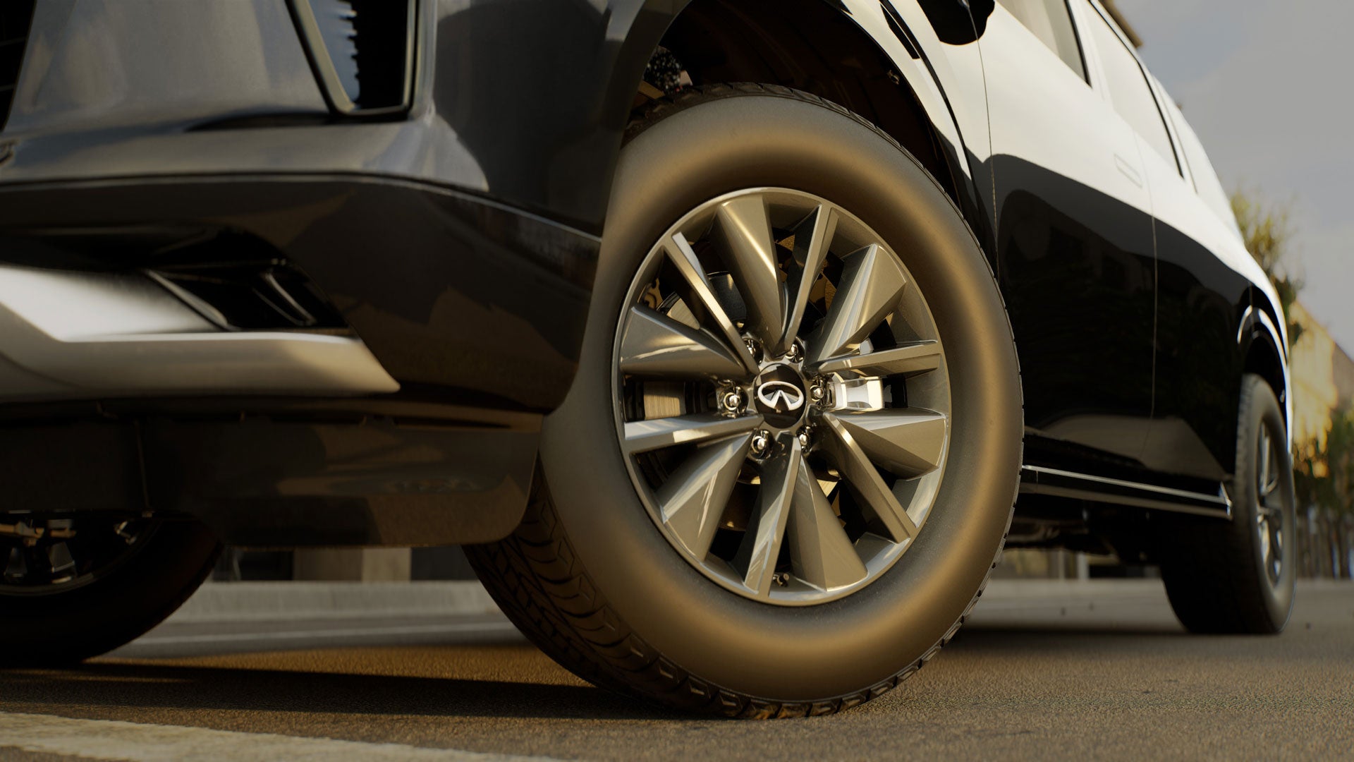 The 2025 QX80’s Invisible Hood View technology lets you see QX80’s front wheels through its hood, allowing for exceptional precise maneuvering when driving and parking.[*]